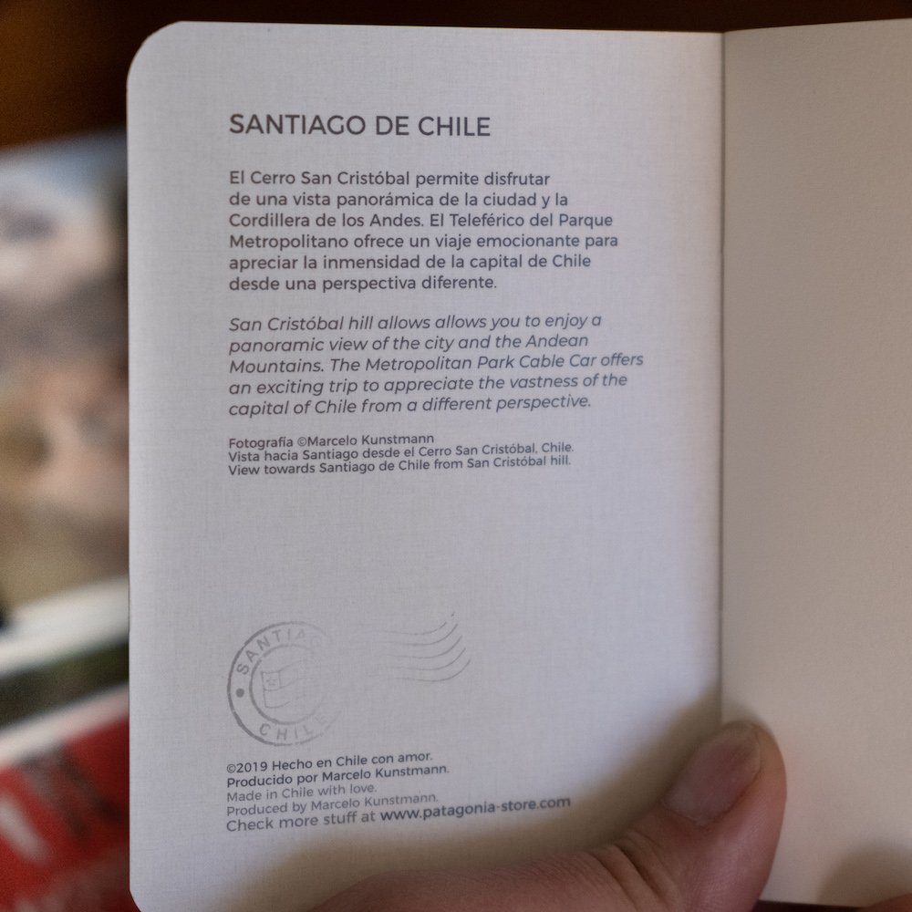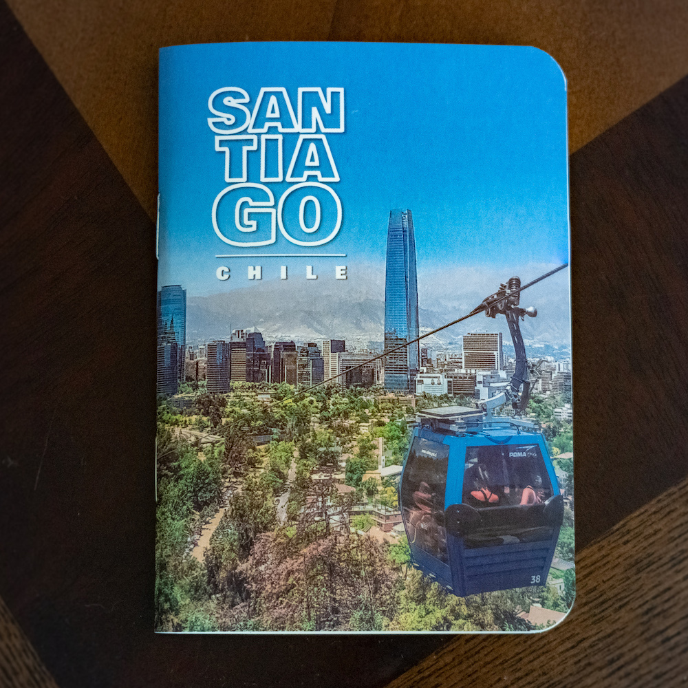 $1,990El precio original era: $1,990.$1,790El precio actual es: $1,790.Hermosa libreta de SANTIAGO DE CHILE de tamaño “pasaporte” de 12 × 8.5 cms., impresa a todo color y forrada con polipropileno mate.