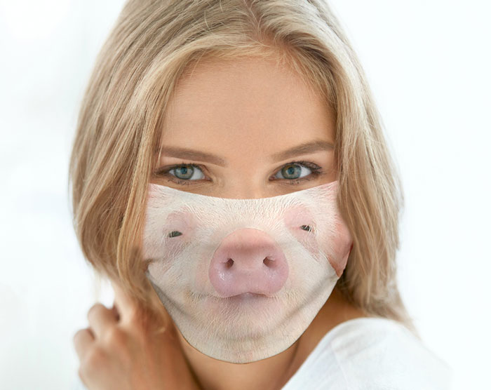 Mascarilla “CABEZA DE CHANCHO” para verse bien cochinín en lycra suave, doble, sintética 100%, respirable.