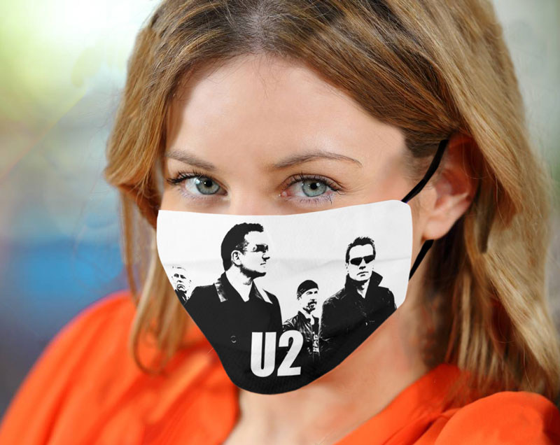 Mascarilla de U2, hecha de lycra suave, doble, sintética 100%, respirable. Ideal para protegerse. Nuestras mascarillas son lavables, livianas y ¡cómodas!