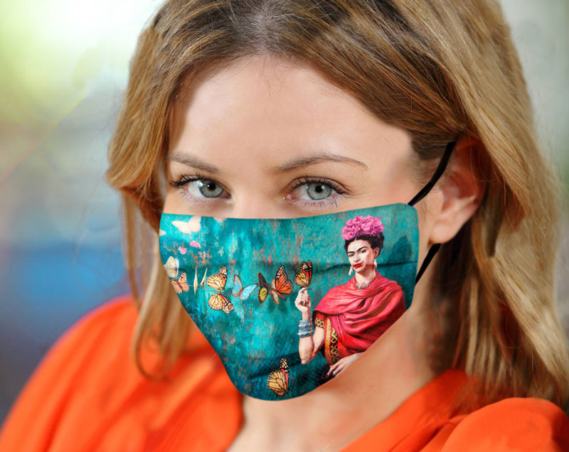 Mascarilla de Frida Khalo hecha de lycra suave, doble, sintética 100%, respirable. Ideal para protegerse. Nuestras mascarillas son lavables, livianas y ¡cómodas!