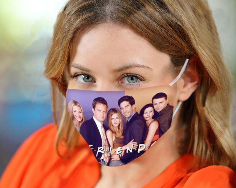 Mascarilla de FRIENDS hecha de lycra suave, doble, sintética 100%, respirable. Ideal para protegerse. Nuestras mascarillas son lavables, livianas y ¡cómodas!