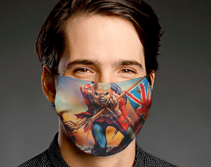 Mascarilla “THE TROOPER” de Iron Maiden de lycra suave, doble, sintética 100%, respirable.