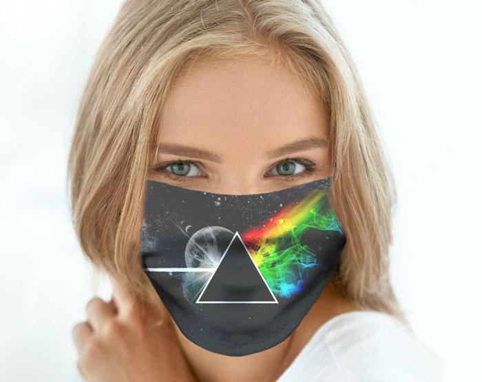 Mascarilla de PINK FLOYD Dark Side of the Moon hecha de lycra suave, doble, sintética 100%, respirable. Ideal para protegerse. Nuestras mascarillas son lavables, livianas y ¡cómodas!