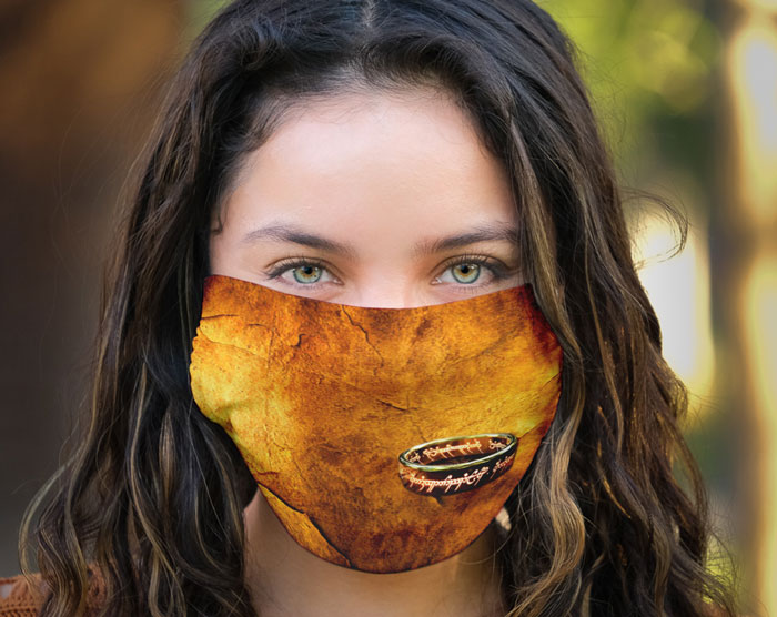 Mascarilla de SEÑOR DE LOS ANILLOS hecha lycra suave, doble, sintética 100%, respirable.