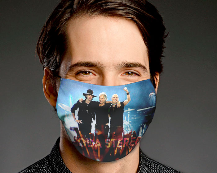 Mascarilla “SODA STEREO EN VIVO” hecha de suave, doble, sintética 100%, respirable. Ideal para protegerse.