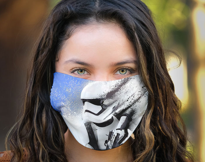 Mascarilla de lycra suave de un Riot Trooper, doble, sintética 100%, respirable. Ideal para protegerse. Nuestras mascarillas son lavables, livianas y ¡cómodas!
