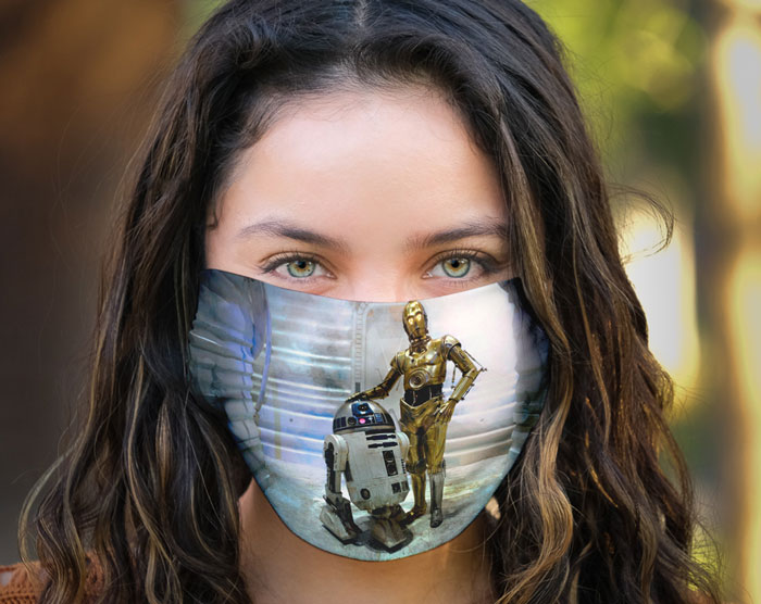 Mascarilla de lycra suave de R2D2 y C3PO, doble, sintética 100%, respirable. Ideal para protegerse. Nuestras mascarillas son lavables, livianas y ¡cómodas!