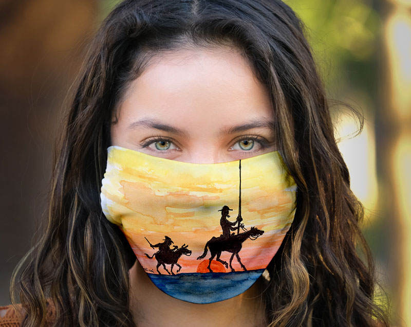 Mascarilla de Don Quijote de la Mancha y Sancho Panza, hecha de lycra suave, doble, sintética 100%, respirable. Ideal para protegerse. Nuestras mascarillas son lavables, livianas y ¡cómodas!